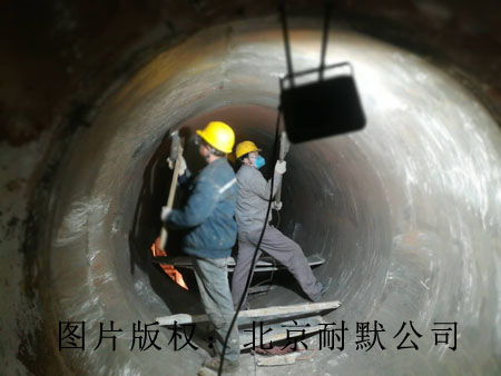 圖(2)脫硫煙道現(xiàn)場防腐耐磨施工,涂層厚度可以根據(jù)要求定制