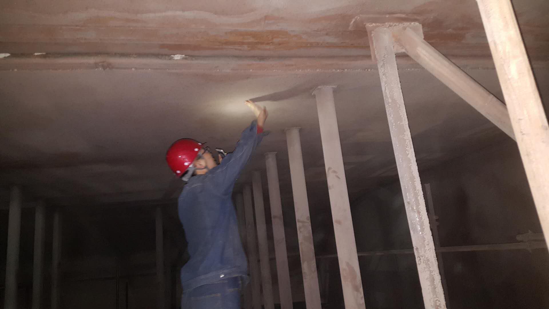 圖(1)KN22脫硫塔防腐材料現場施工中