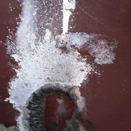 ④ 調和并涂抹KNM17脫硫塔漏液堵漏材料,用刮涂工具對漏點行全面治理;