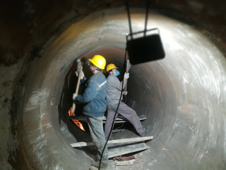 石墨烯KNM22脫硫塔防腐涂料是一類石墨烯改性防腐涂料。其采用濕碰濕噴涂雙涂層的方式完成,施工簡單,速度快,修補快速。詳細來說,首先,用陶瓷合金涂層作為打底層、顏色為深灰色。之后,在陶瓷合金涂層的基礎上用石墨烯KNM22脫硫塔防腐涂料涂覆作為表面功能層,對設備進行防腐保護,顏色為黑灰色,兩層涂層顏色不同具備識別層技術功能,涂層總厚度為300-500μm,涂層中止處平滑過渡,形成致密的保護膜,從而有效地對脫硫塔的內壁進行了防腐保護。